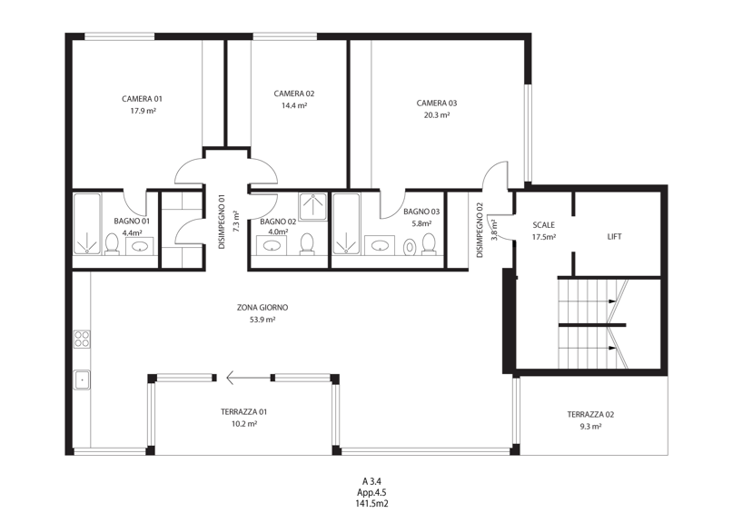 | A.3.4 | 3. OG | 4.5 | 142 m2 | |||||
