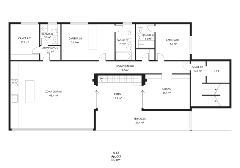 | A.4.3 | Attico | 5.5 | 187 m2 | CHF 2'450'000 | ||||